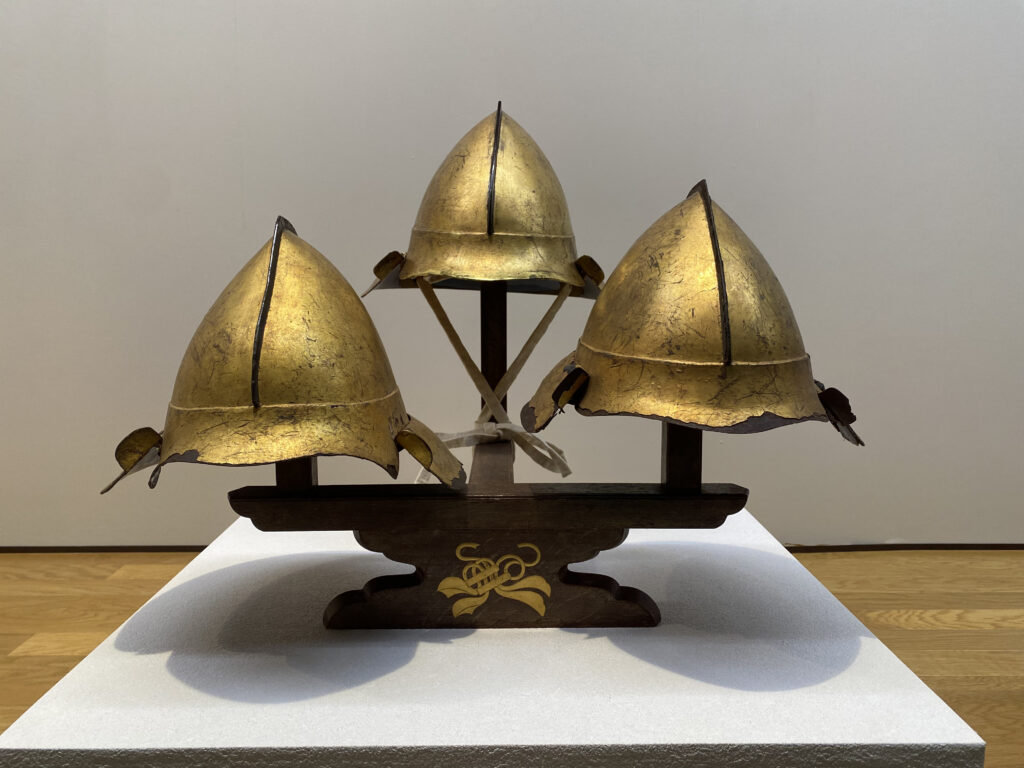 兜鉢地鉄の厚さは3㎜もあり、重さは4㎏で当世具足の兜としては大変重い部類。