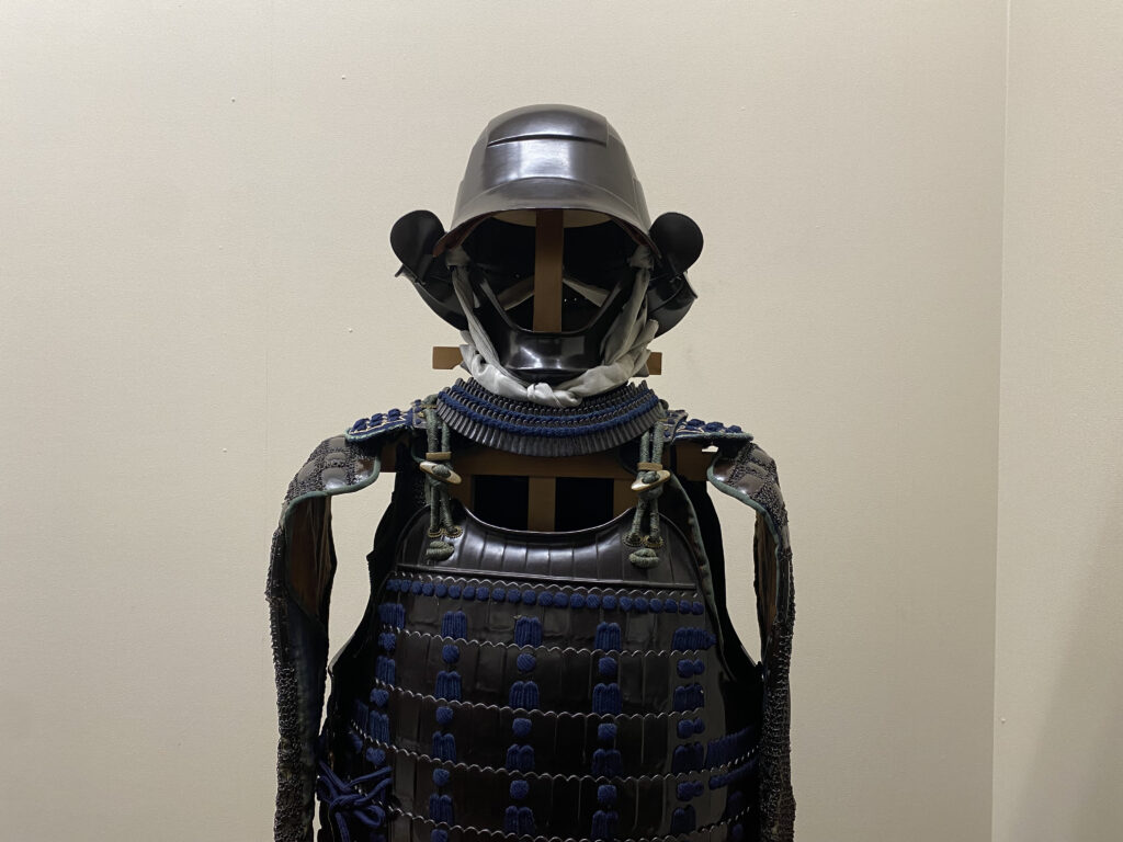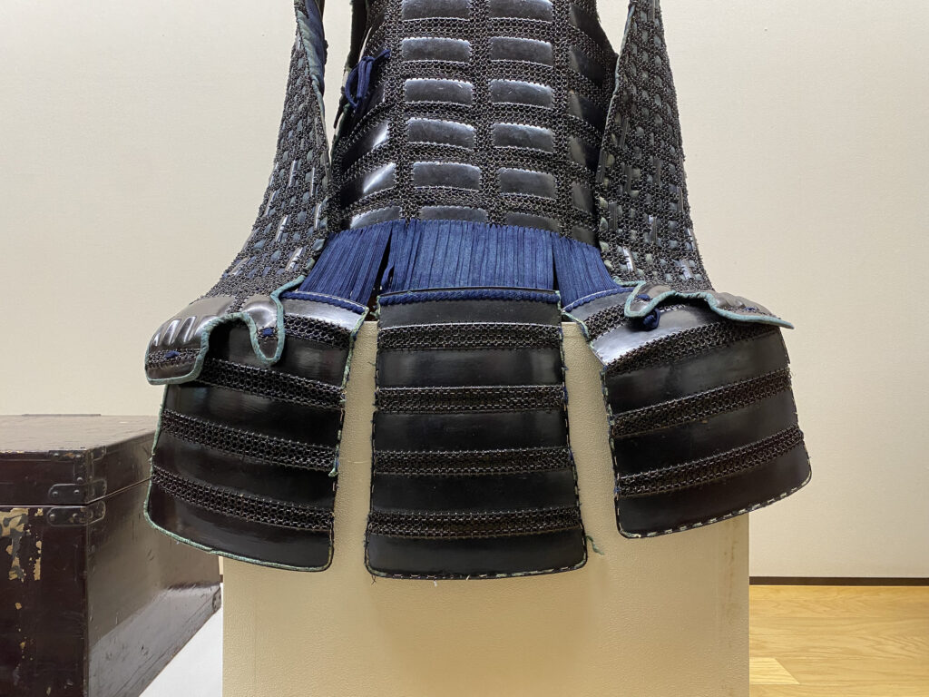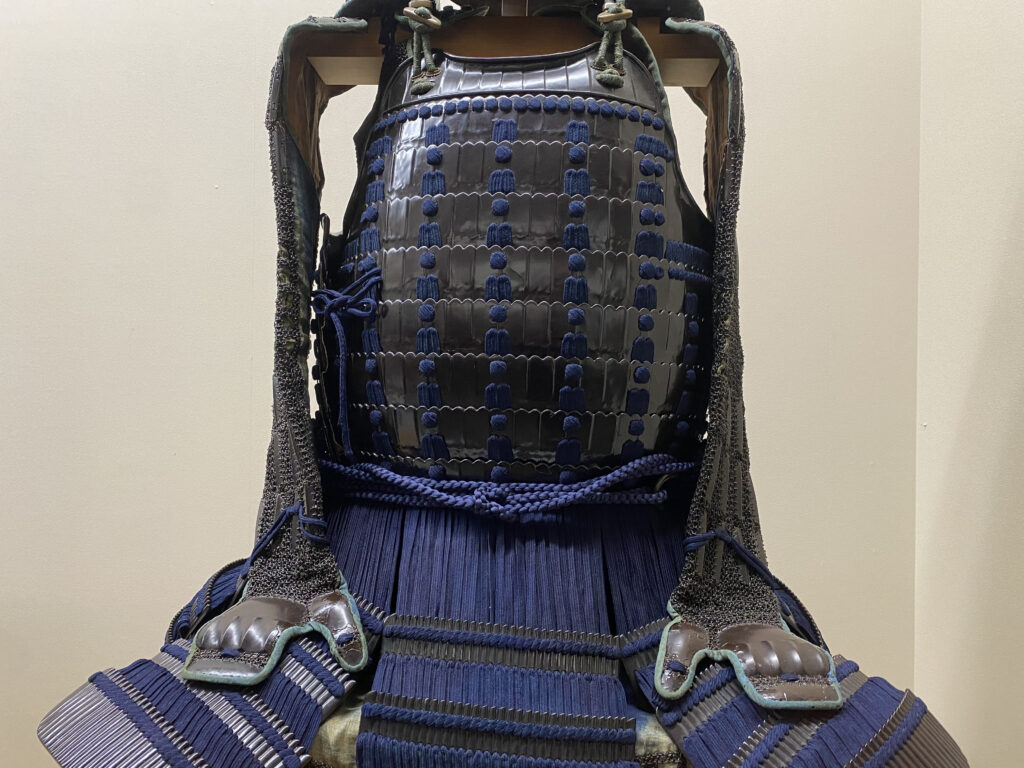 鉄黒漆塗切付伊予札紺糸素懸威二枚胴具足
