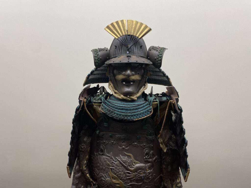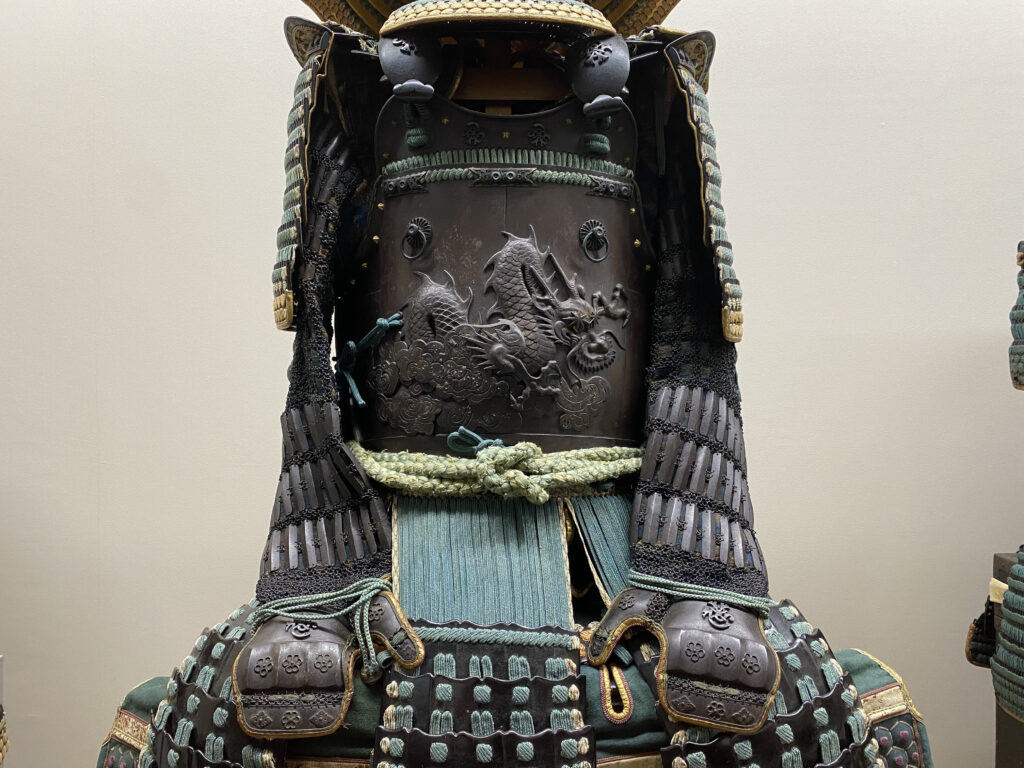 鉄錆地雲龍文打出縦矧両引合胴具足