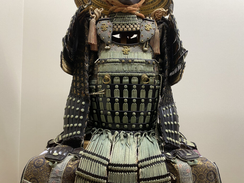 鉄黒漆塗萌黄糸素懸威最上胴具足