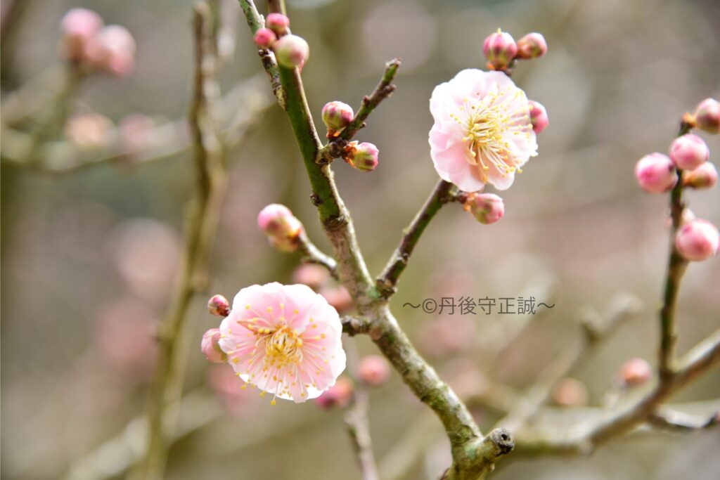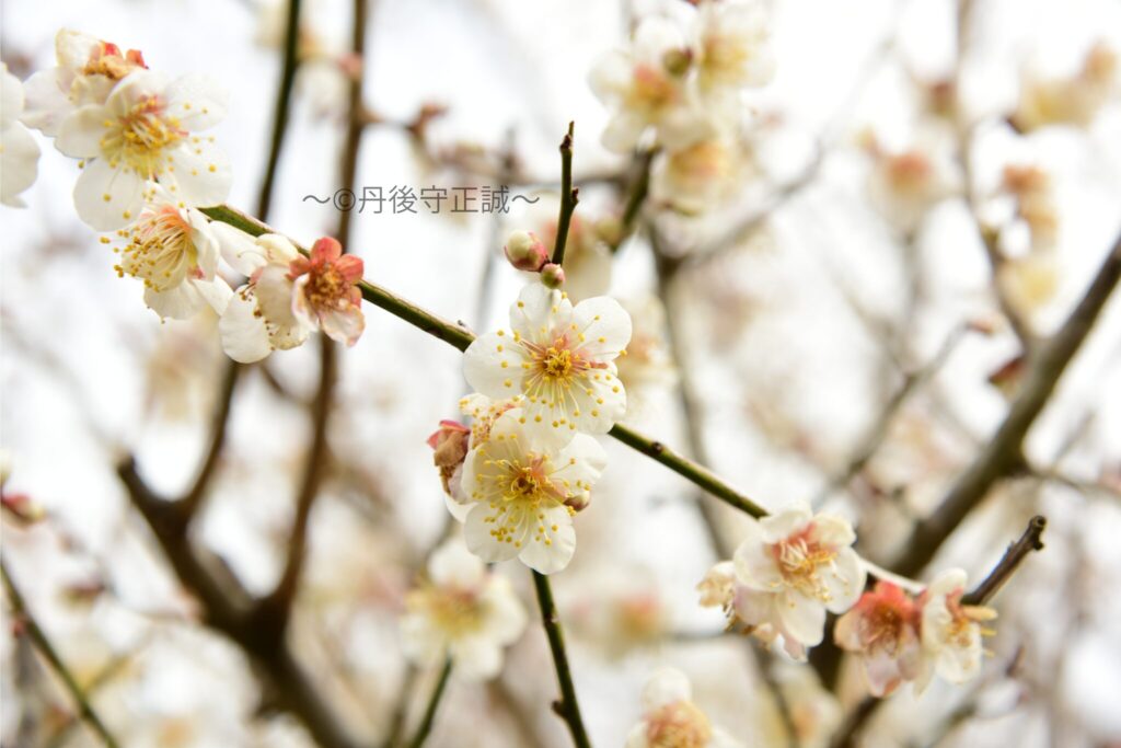 その成長には特徴があり、若木になると枝が四方に傾いていき、地面と接した部分から根付いて新たな子株となります。臥龍梅の名称は、この成長の様子が、地に臥せた龍のように見えることに由来しています。