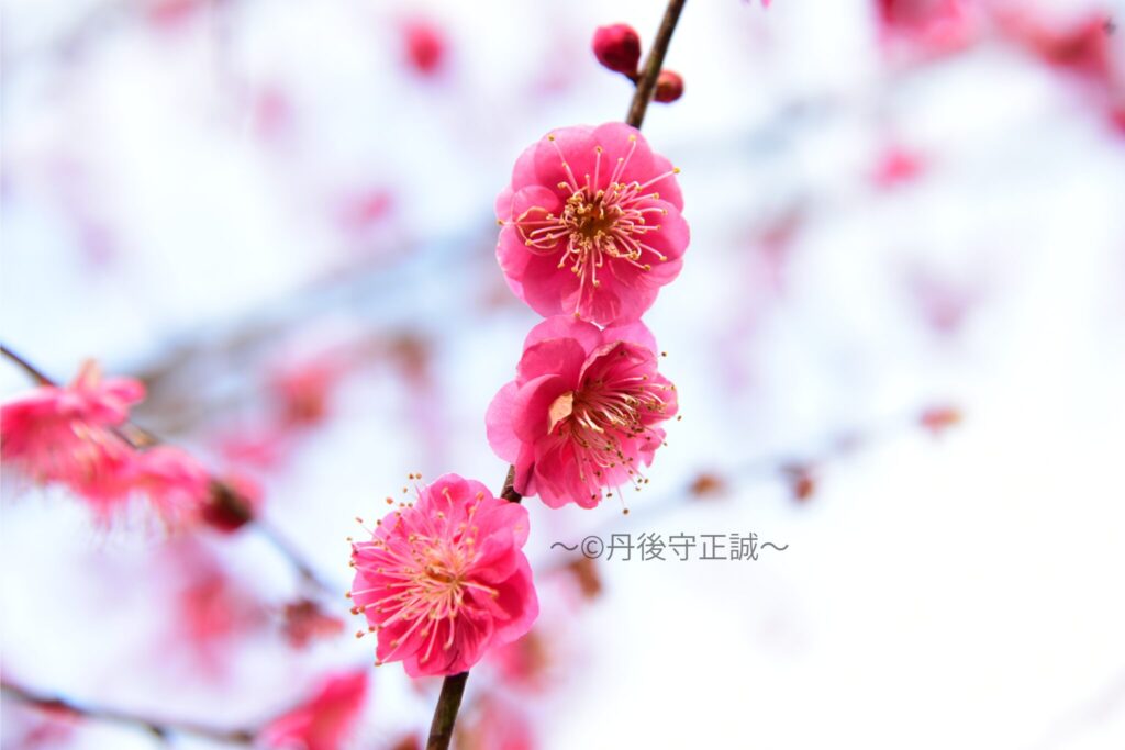 藤川天神の臥龍梅は、菅原道眞公が植えた一本の梅から繁茂したと伝えられており、淡い紅色で八重咲きの花を咲かせます。毎年、二月上旬頃から咲き始め、二月下旬頃には満開になります。